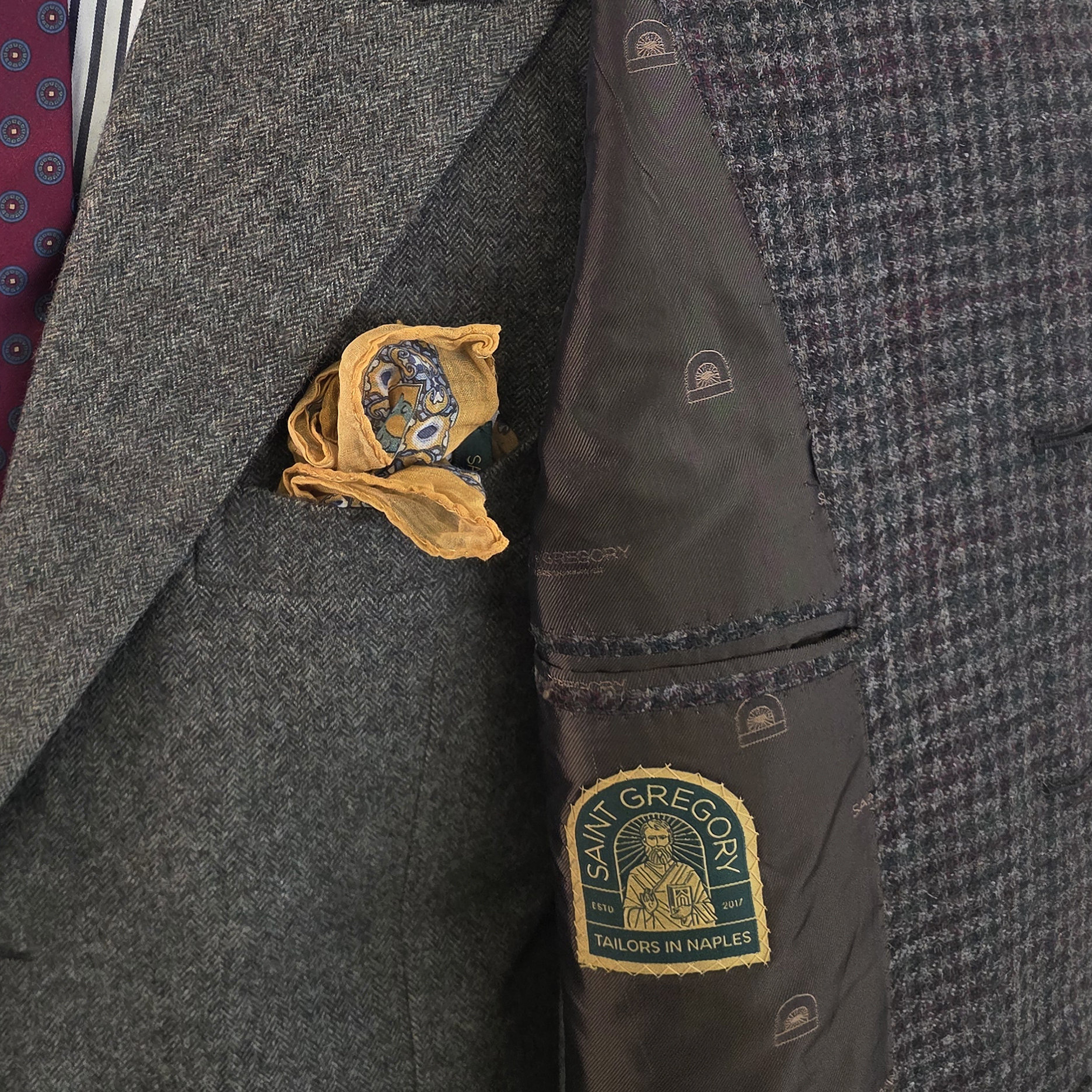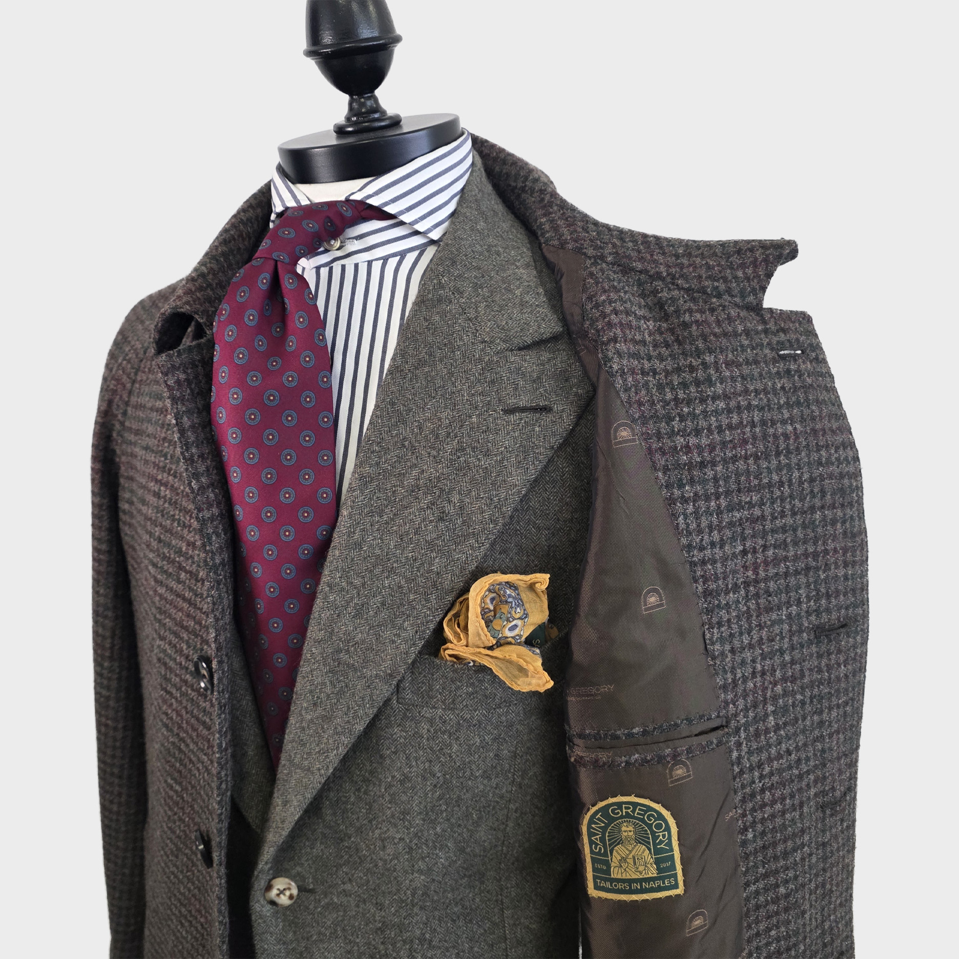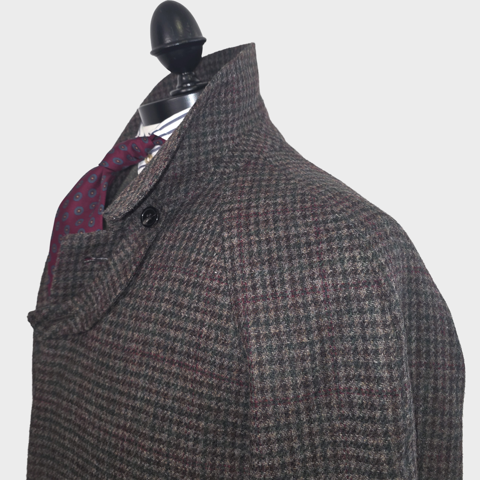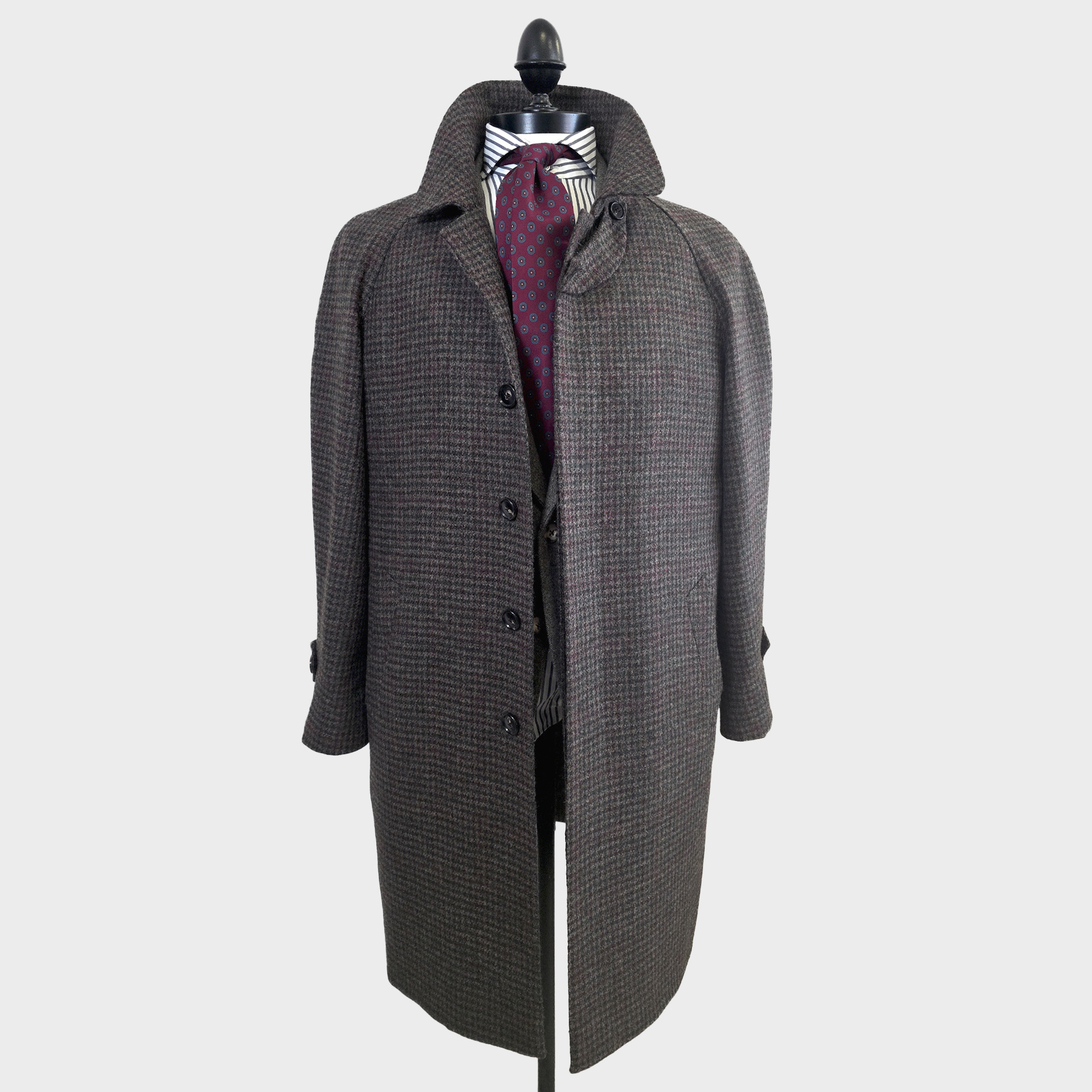 This construction ensures a clean drape, a natural shoulder line and enhanced mobility. At Saint Gregory, the raglan is interpreted through precise tailoring and disciplined pattern cutting, allowing the coat to sit comfortably over a jacket while maintaining a balanced and defined silhouette.